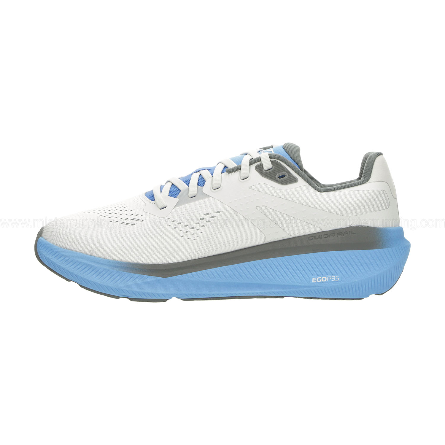 The lightweight and breathable engineered mesh upper ensures constant ventilation, while TPU inserts on the heel and inner medial area offer targeted support, especially useful during the landing phase. The EGO P35 compound midsole, combined with the rocker profile, provides extra push with every step, while the Guide Rail insert stabilizes the foot, making the stride more controlled and safe. The outsole, featuring an abrasion-resistant tread, guarantees durability and excellent grip on any surface.