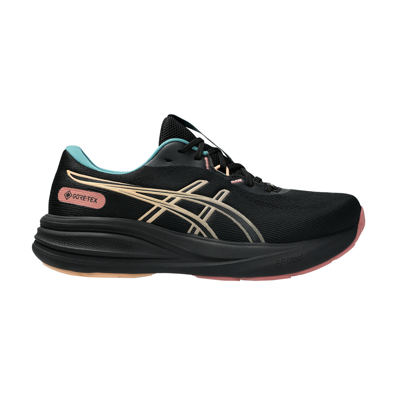 The upper is made of soft-touch engineered mesh with wider mesh zones for optimal breathability, covered by a waterproof Gore-TEX membrane. The midsole, updated with the FF BLAST compound, works in synergy with the 2mm increased stack and the Pure Gel insert to offer superior cushioning and a more responsive push with every step. The outsole, featuring an AHAR+ rubber tread in the heel area, is designed to ensure high wear resistance and excellent traction.