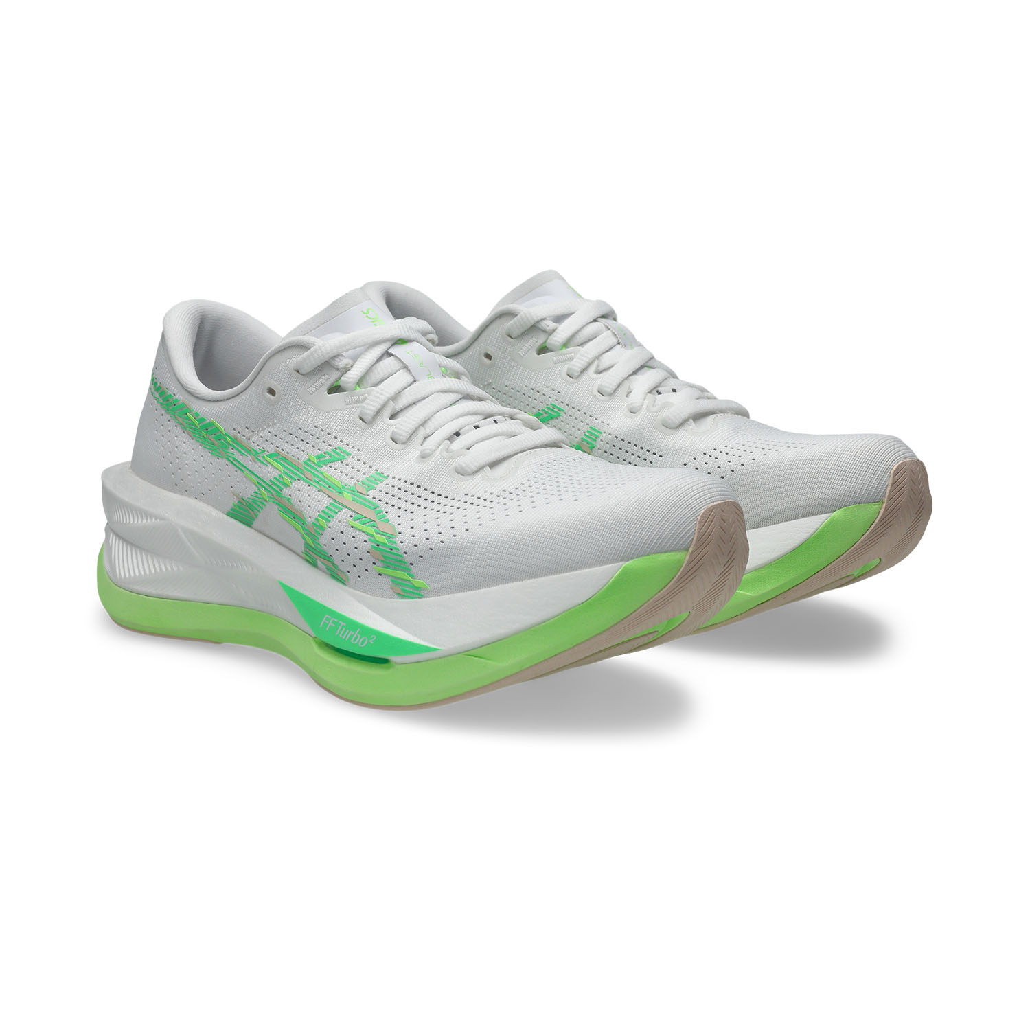 Lightweight and stretchy engineered mesh upper provides the perfect blend of breathability, natural support, and snug comfort. The extremely responsive and highly cushioned midsole features a combination of FF Turbo² and FF Blast Max foams: the former provides surprising bounce when pushing off, while the latter provides unparalleled cushioning. Nested between the two compounds, the Pebax plate amplifies propulsion for an explosive push with every step, generating powerful and fast strides. The ASICSGRIP rubber outsole completes the shoe for a secure and reliable grip.