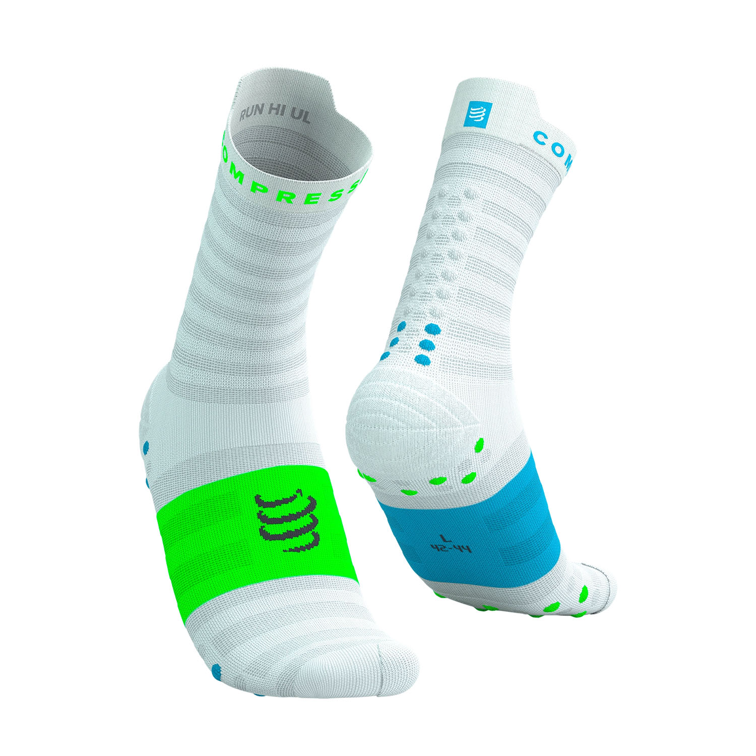 Compressport Pro Racing V4.0 Ultralight Run High Socks White/Norse Blue/Neon Green