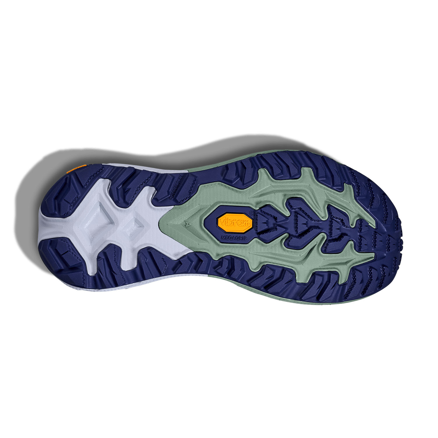 The knitted upper, designed for high breathability and a fit that adapts to the shape of the foot, features a tear-resistant coating and reinforcements in high-wear areas for increased durability. The midsole, made with a dual-density compound, combines a top layer of supercritical EVA for soft cushioning and a bottom layer of compressed EVA for effective impact absorption. The interaction between the two foams ensures the perfect balance between propulsion and comfort. The integrated TPU plate in the forefoot not only improves stability during the stride, making the transition smoother and more controlled, but also protects the ball of the foot. The outsole features a Vibram Megagrip tread, with 5 mm lugs arranged in an inverted orientation, to offer effective grip even on uneven or slippery surfaces.