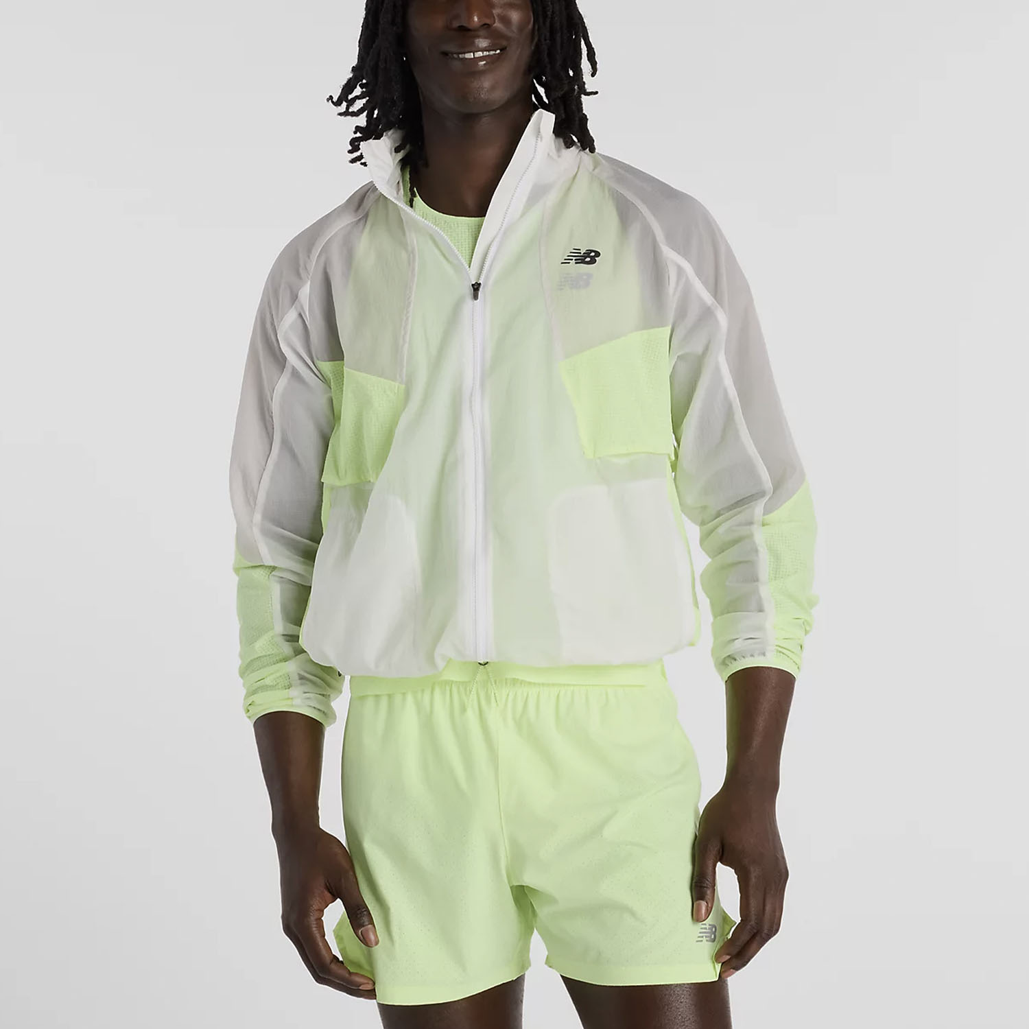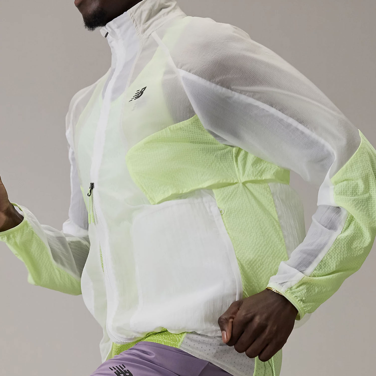 Push your limits with New Balance RC, the lightweight and durable men's running jacket ideal for staying cool even at high intensity. The water-repellent finish protects you from light rain, allowing you to maintain pace and focus in any condition.