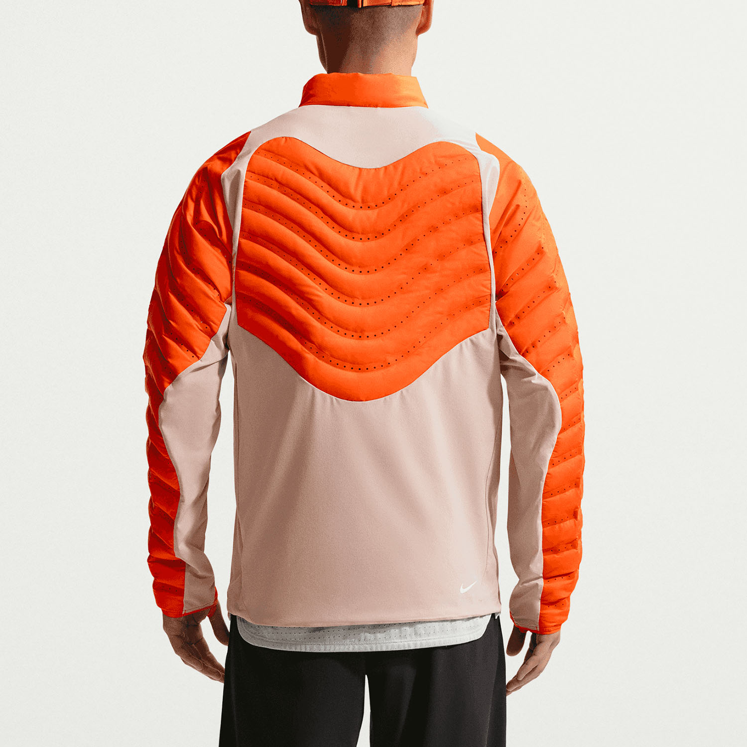 But, Nike AeroLoft is much more than simple thermal isolation: laser-cut holes situated between the down chambers allows heat to escape increasing the active breathability level and the products comfort. Isolation chambers and laser cut holes are strategically positioned based on relevant data measured through body mapping to optimize warmth, breathability and freedom to move.