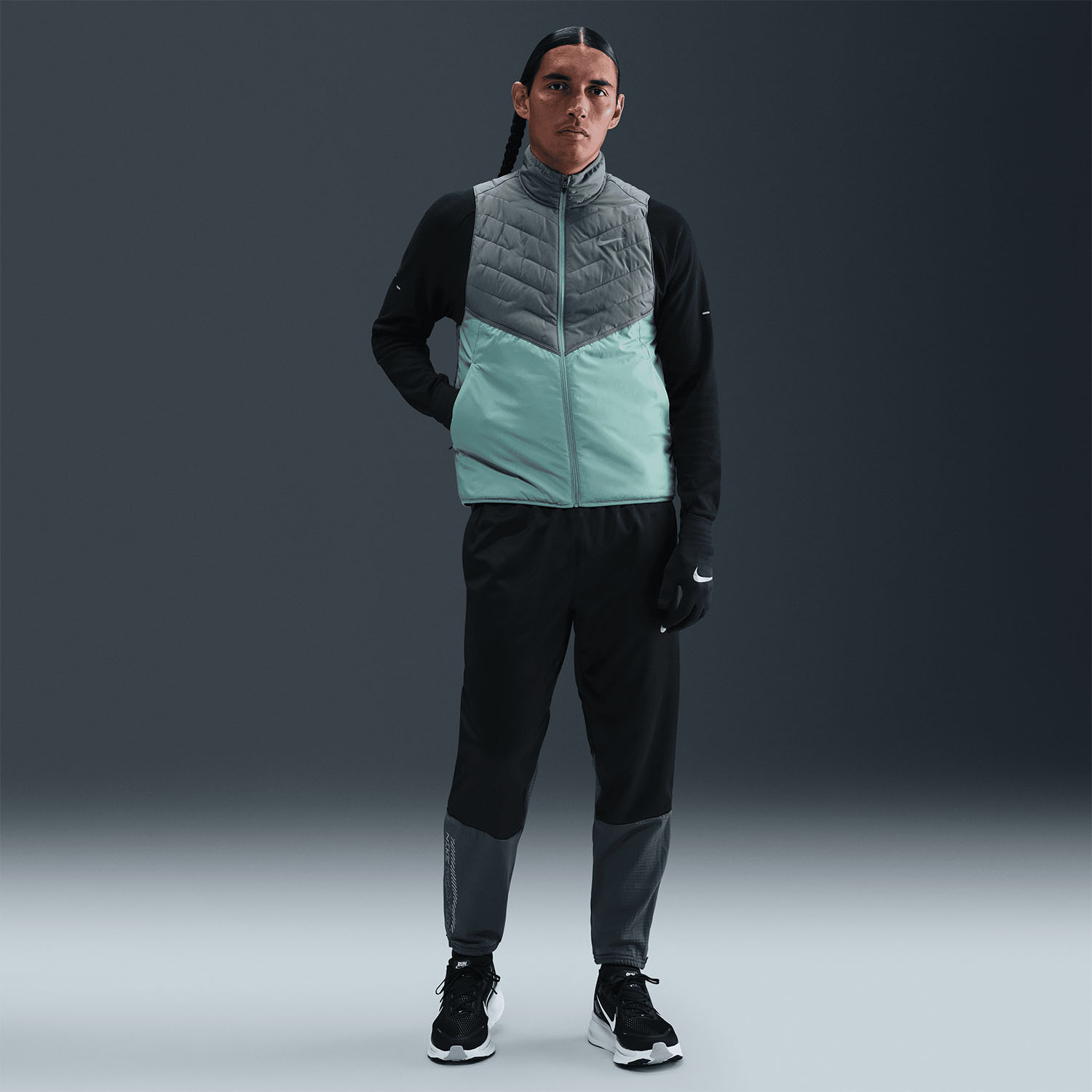 The Nike Therma-FIT Repel men's running vest is made from thermoregulating fabric and features a water-repellent finish to help keep you warm and dry. Plus, its synthetic insulation keeps you protected from the first mile to the last on colder days.