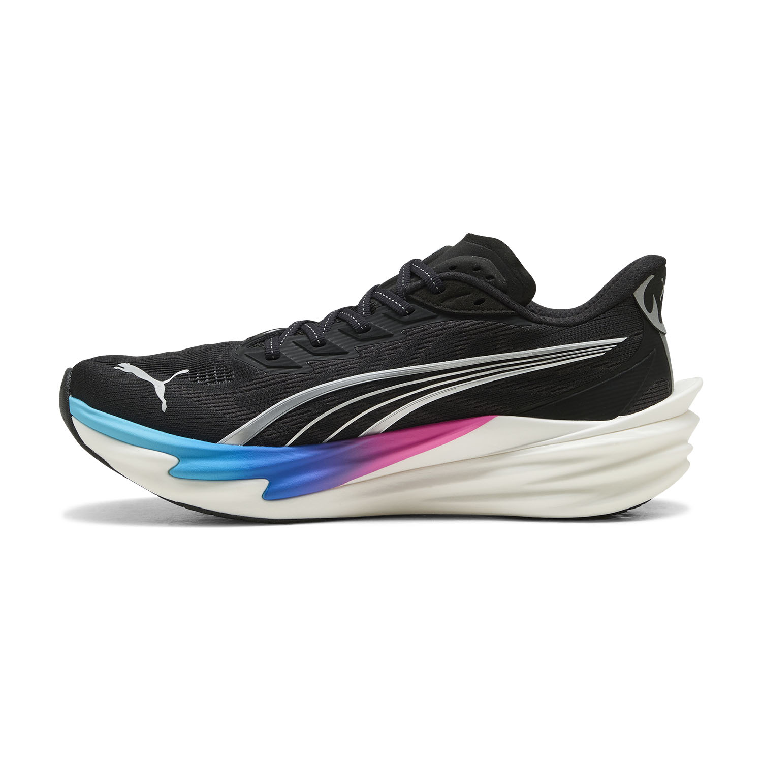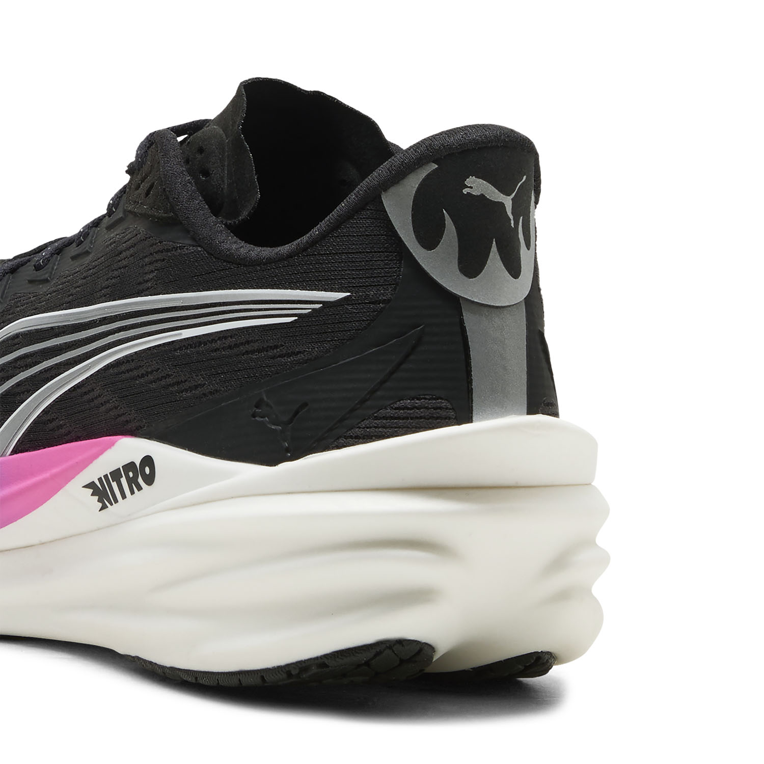 The engineered mesh upper, made even more breathable and made with at least 20% recycled materials, wraps the foot naturally without constricting it, ensuring constant comfort and ventilation throughout the run. The NITROFOAM midsole has been updated to provide superior cushioning and greater energy return, allowing for a smoother stride, while the flexible PWRPLATE carbon fiber plate provides propulsive thrust with every step. The PUMAGRIP outsole is resistant to wear and designed to ensure excellent grip on various surfaces.