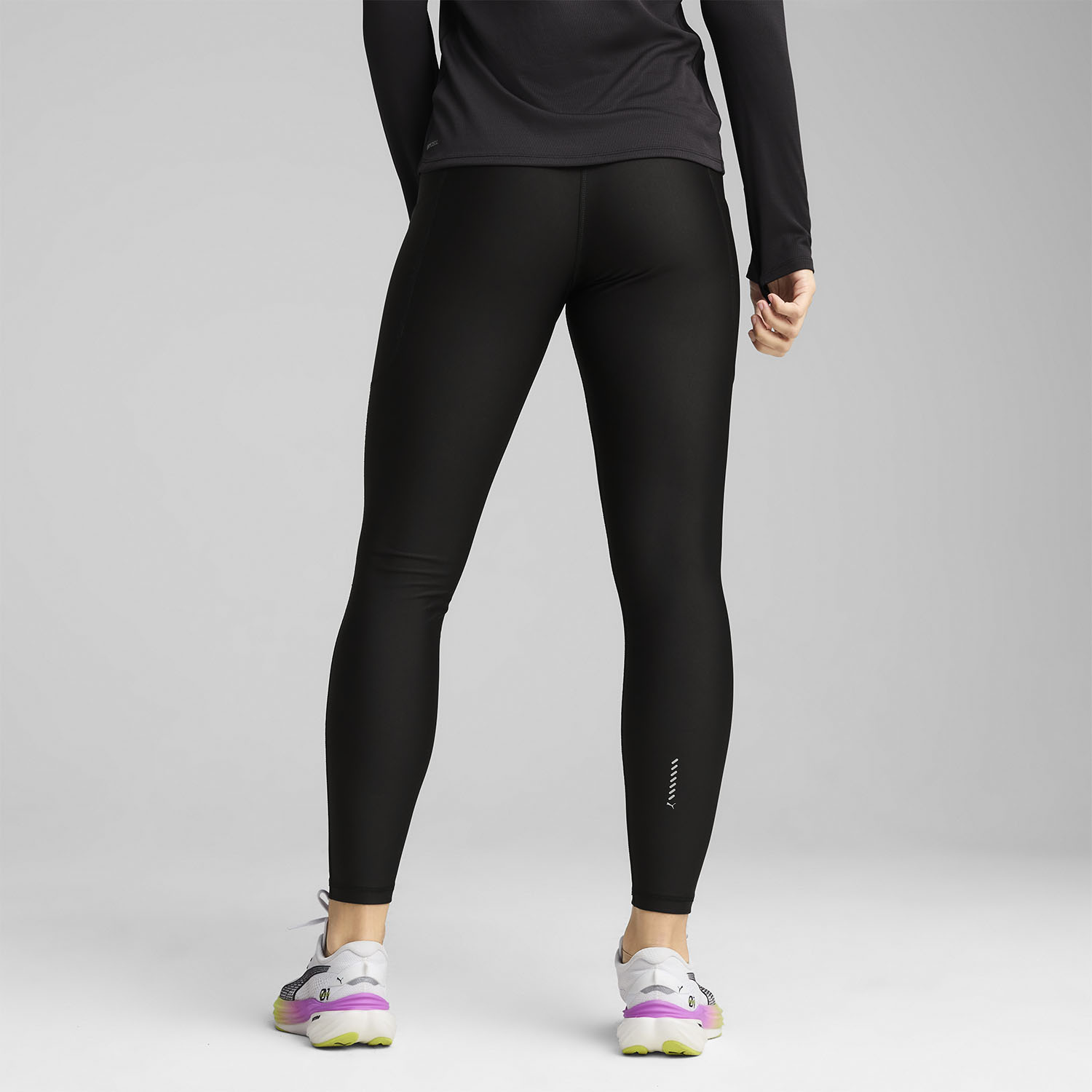 Enhance your performance with the Puma Velocity women's running tights. The stretchy fabric, combined with the high-waisted design and integrated pockets, ensure support, dry skin, and practicality while running.