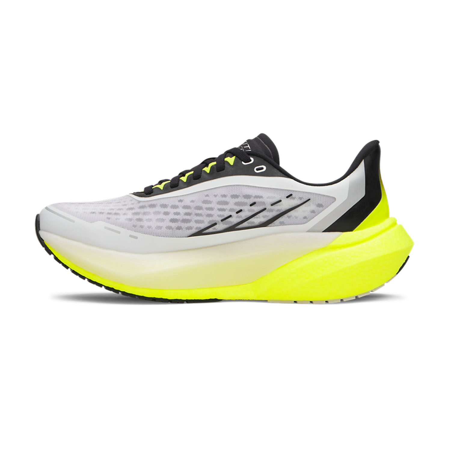 The upper is made of extremely lightweight and breathable mono-mesh, for optimal moisture management and a precise fit. The midsole is made entirely of HOVR+ compound, partially covered by a firmer membrane that optimizes stride control while maintaining excellent impact absorption. The outsole features a thin, high-resistance tread, designed to offer superior traction and long-lasting durability on any road surface.