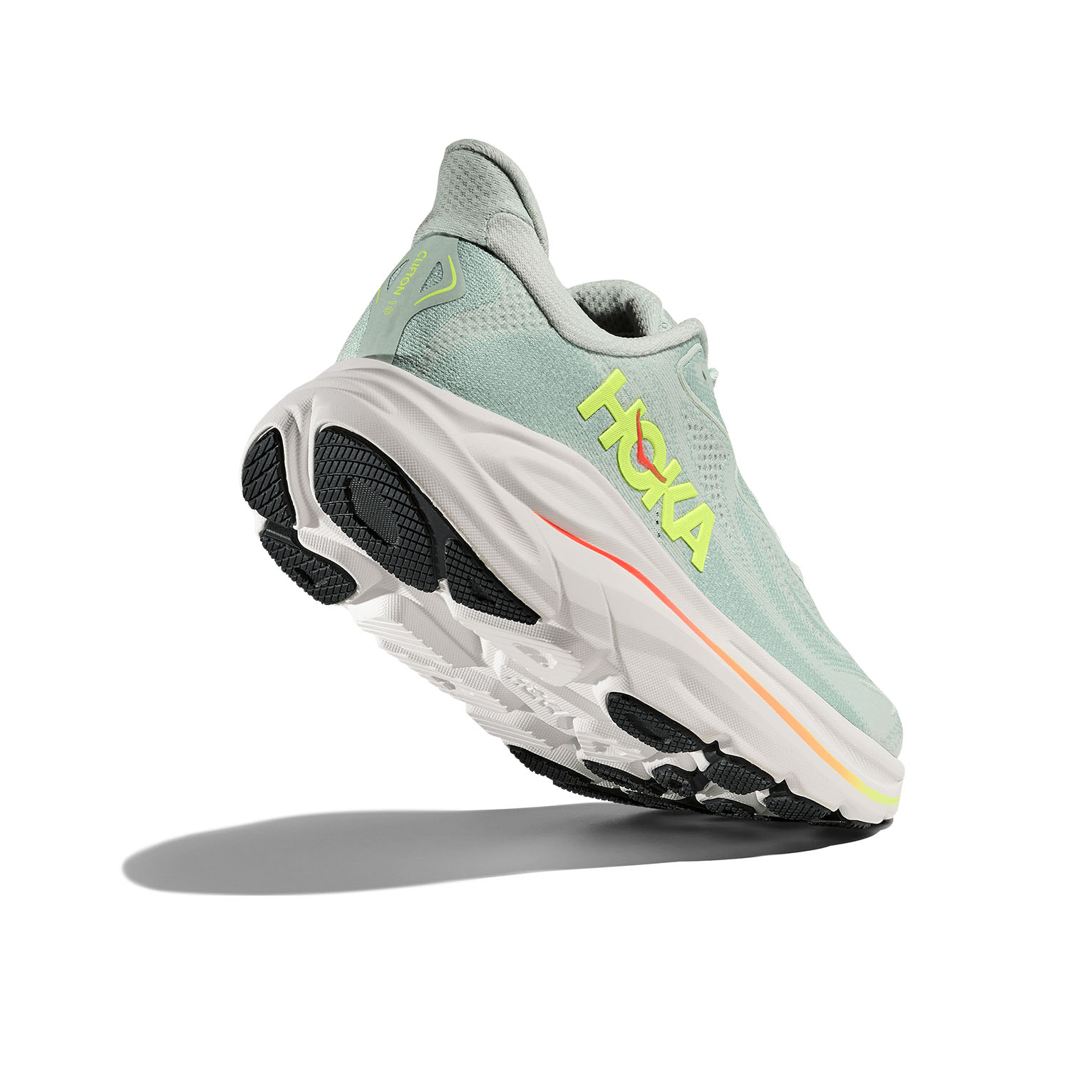 La poca diferencia entre talón y punta, la entresuela con su forma única y el exclusivo rodamiento HOKA, facilitando una zancada suave y fluida desde el apoyo hasta el despeje en el ciclo natural del paso del corredor.