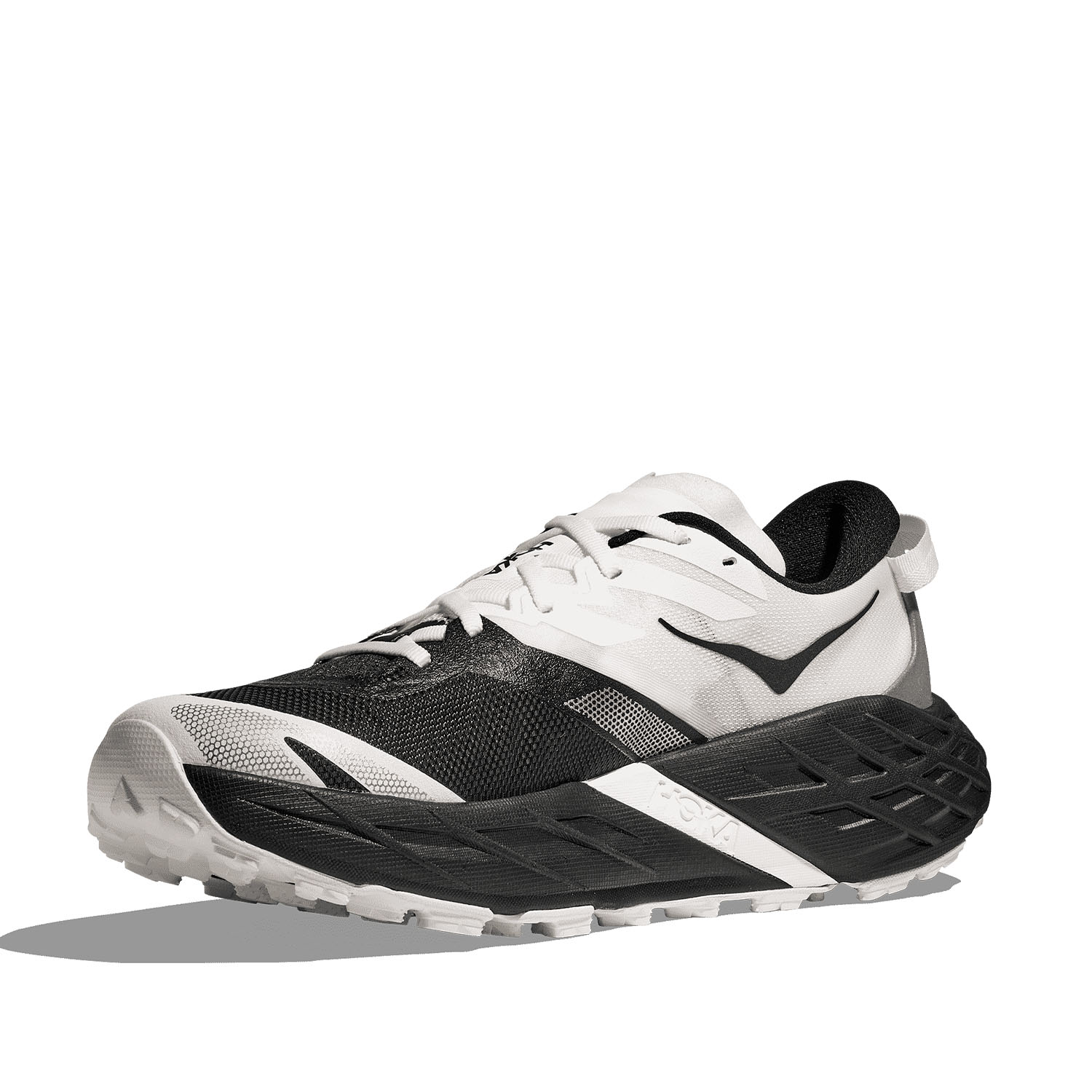 Parte superior en tejido RPET ligero y envolvente, que sigue los movimientos del pie durante carreras prolongadas. La entresuela de EVA supercrítica (SCF) mejorada proporciona mayor capacidad de respuesta y retorno de energía en comparación con la versión anterior. La suela Vibram Megagrip con tacos de tracción de 5 mm presenta un diseño actualizado y orientación invertida, lo que garantiza un agarre excepcional tanto en rocas como en terrenos irregulares o resbaladizos.
