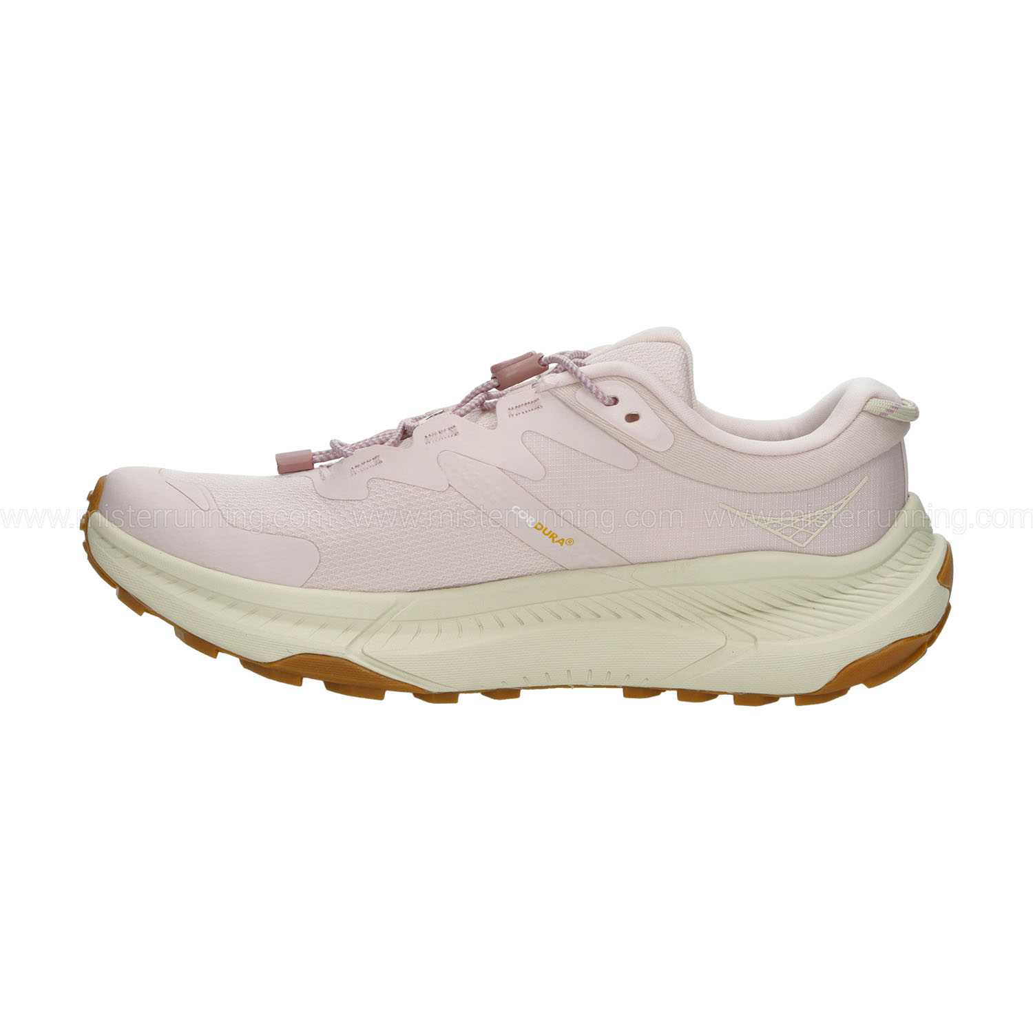 La poca diferencia entre talón y punta, la entresuela con su forma única y el exclusivo rodamiento HOKA, facilitando una zancada suave y fluida desde el apoyo hasta el despeje en el ciclo natural del paso del corredor.