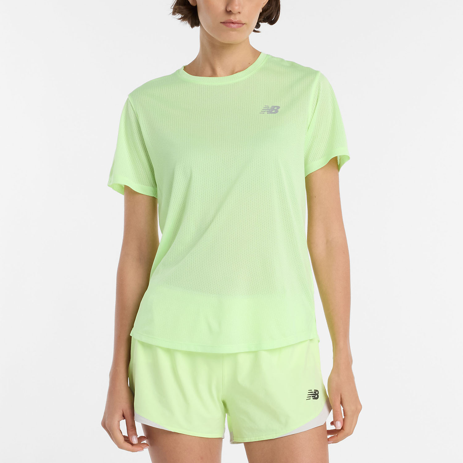 La camiseta de running para mujer New Balance Athletics está confeccionada íntegramente en malla técnica, ligera y transpirable, que te permite correr y entrenar con la máxima comodidad.