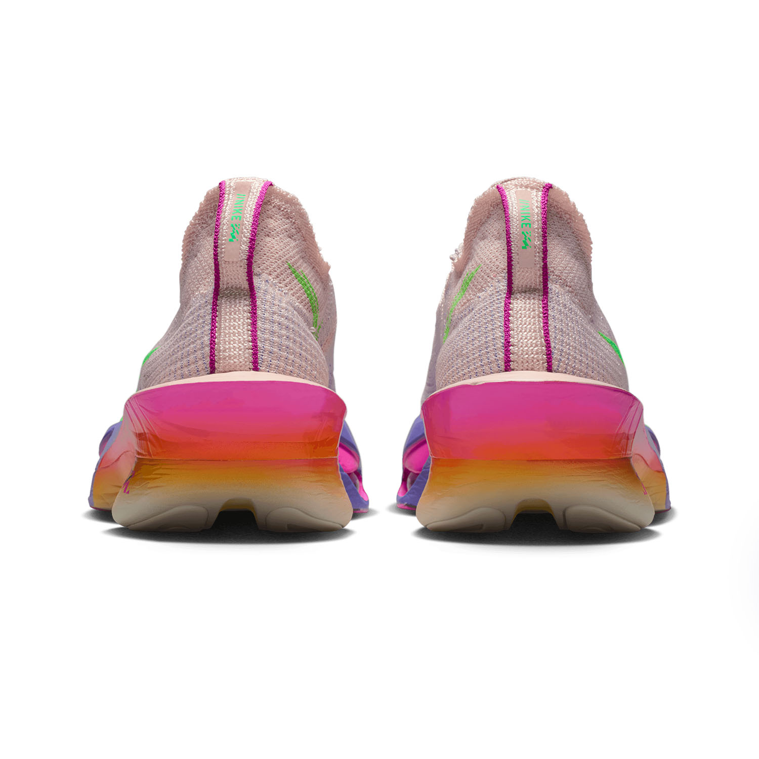 La espuma ZoomX garantiza retorno de energía y reactividad más altas de la actual producción Nike. El peso de ZoomX es inferior de ⅓ en comparación con la espuma Cushion y esto garantiza mejor rendimiento con máxima amortiguación y un peso menor. Una mezcla similar a la espuma ZoomX se usaba en la industria aeroespacial, pero desde hace tiempo esta innovadora espuma se encuentra en las zapatillas de alto rendimiento. Las láminas de la espuma ZoomX se realizan con autoclaves en condiciones de calor extremo y presión: para obtener la parte final de la entresuela, el producto se corta en formas predefinidas para luego ser puesto en moldes de compresión.