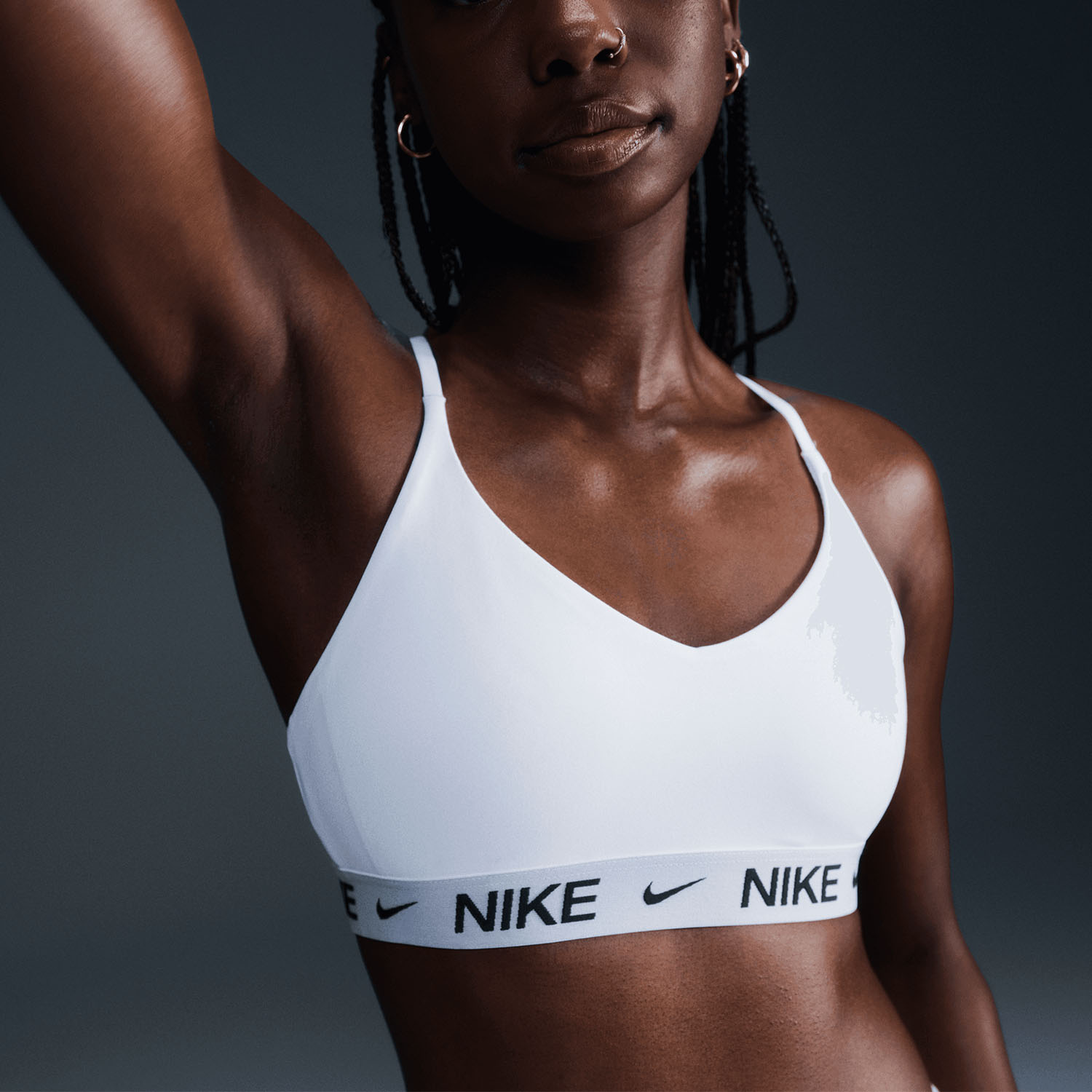 El Nike Indy es un sujetador deportivo de sujeción ligera que ofrece libertad de movimiento ideal para entrenamientos de bajo impacto o comodidad durante todo el día.