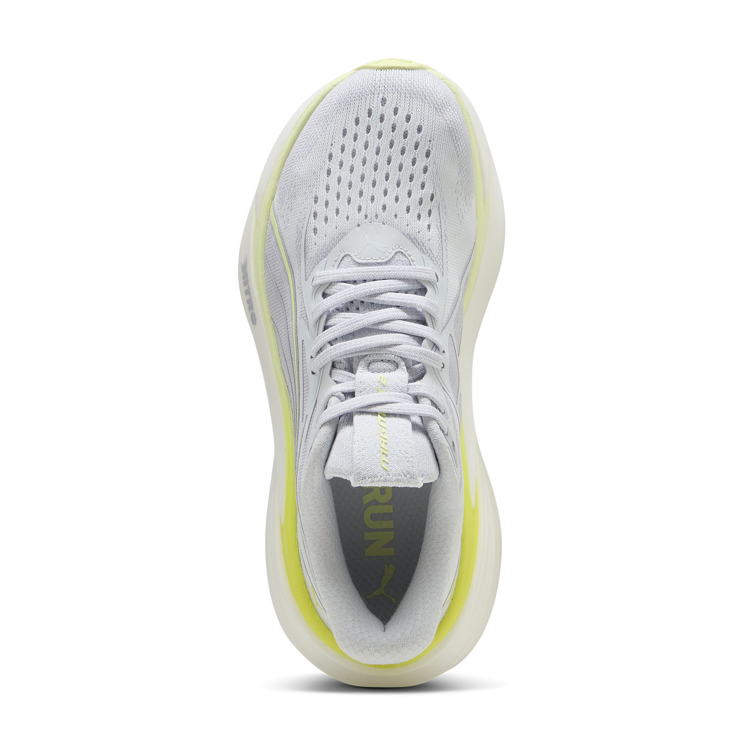 La parte superior de malla técnica, fabricada con un 30 % de materiales reciclados, se ha actualizado en comparación con la versión anterior y es aún más transpirable y ligera. La entresuela NITROFOAM se ha optimizado para mejorar el rebote y la transición talón punta. La suela exterior de goma PUMAGRIP, estratégicamente ubicada en las zonas de mayor desgaste, garantiza durabilidad y una tracción eficaz.