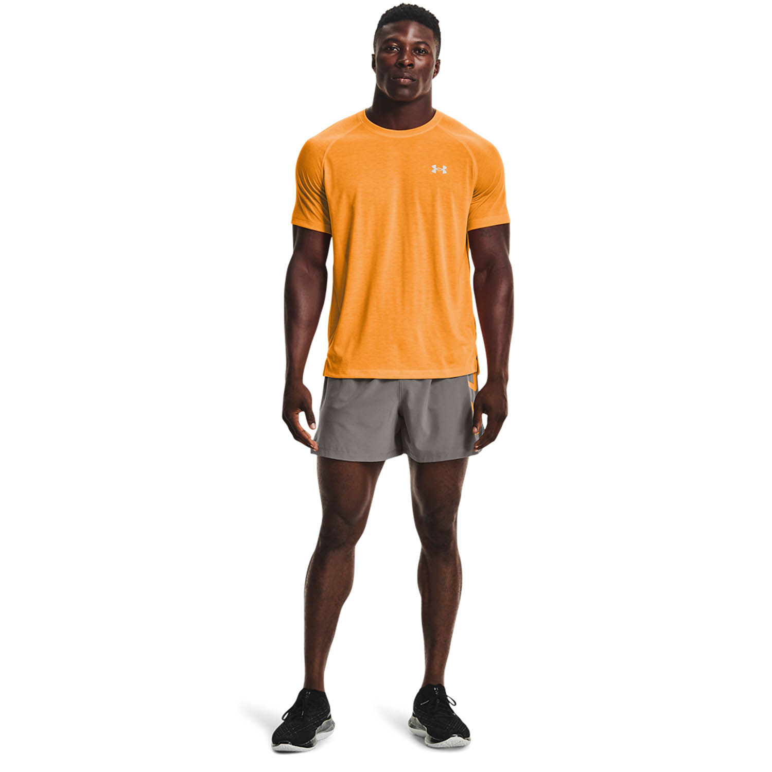 Under Armour Speedpocket 5in Shorts Concrete/Omega Orange/Reflective