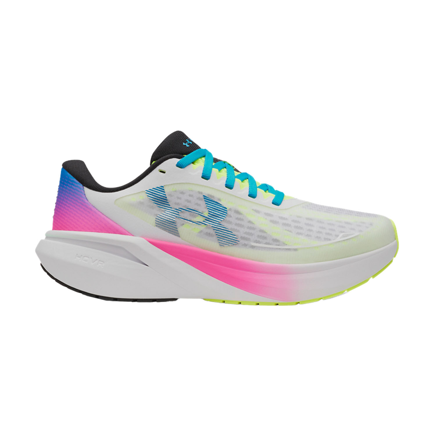 La parte superior de malla mono, extremadamente ligera y transpirable, garantiza una gestión óptima de la humedad y un ajuste preciso que envuelve el pie sin sobrecargarlo. La entresuela de compuesto HOVR proporciona una eficaz absorción de impactos, devolviendo la energía a cada paso para una respuesta suave y reactiva. La suela exterior cuenta con una banda de rodadura de goma de alta durabilidad, diseñada para ofrecer una tracción superior y una estabilidad segura en cualquier superficie.
