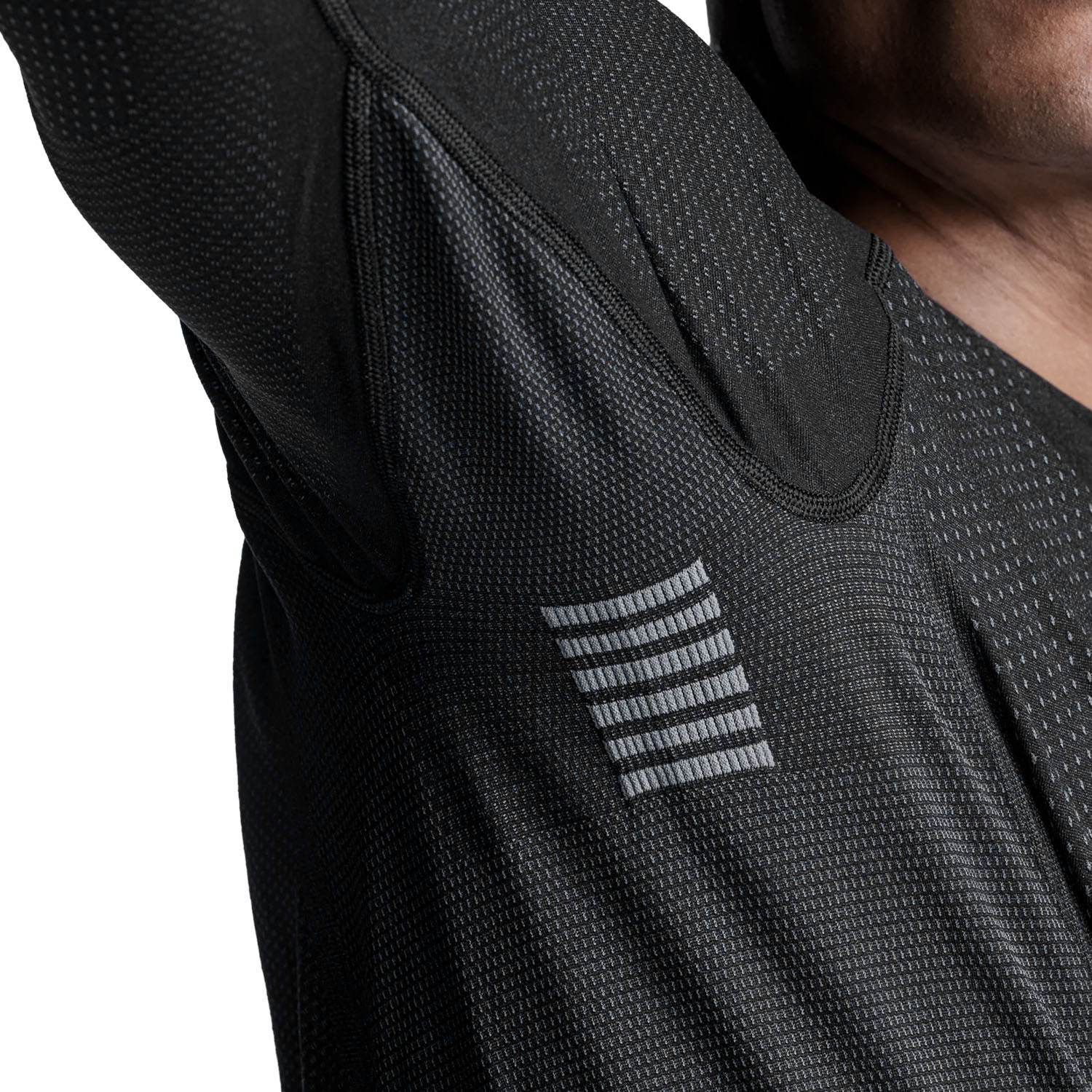 Ubicadas en las zonas donde la sudoración es mayor, estas zonas de ventilación aceleran el intercambio de aire, evitando la acumulación de calor y garantizando un confort térmico inmediato.