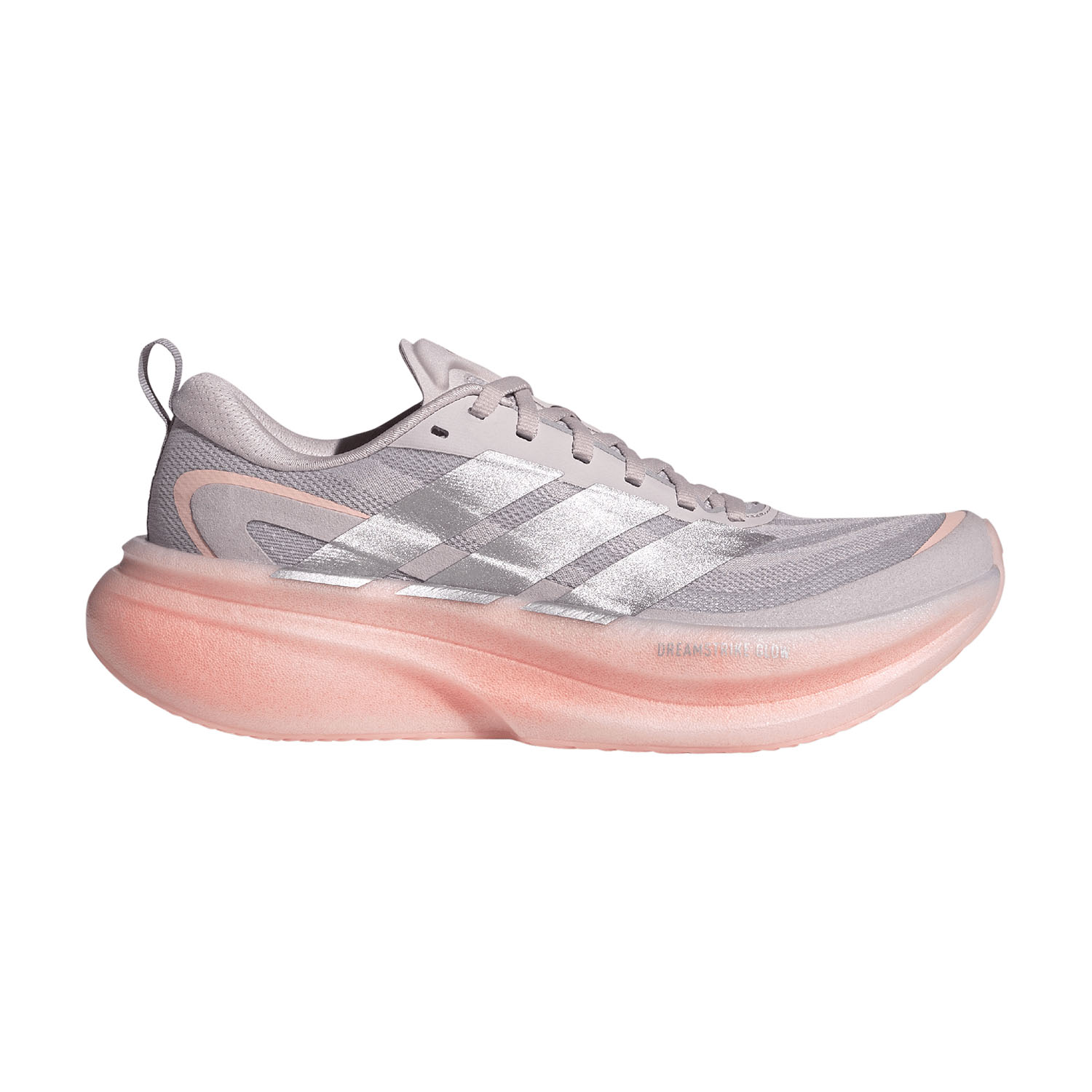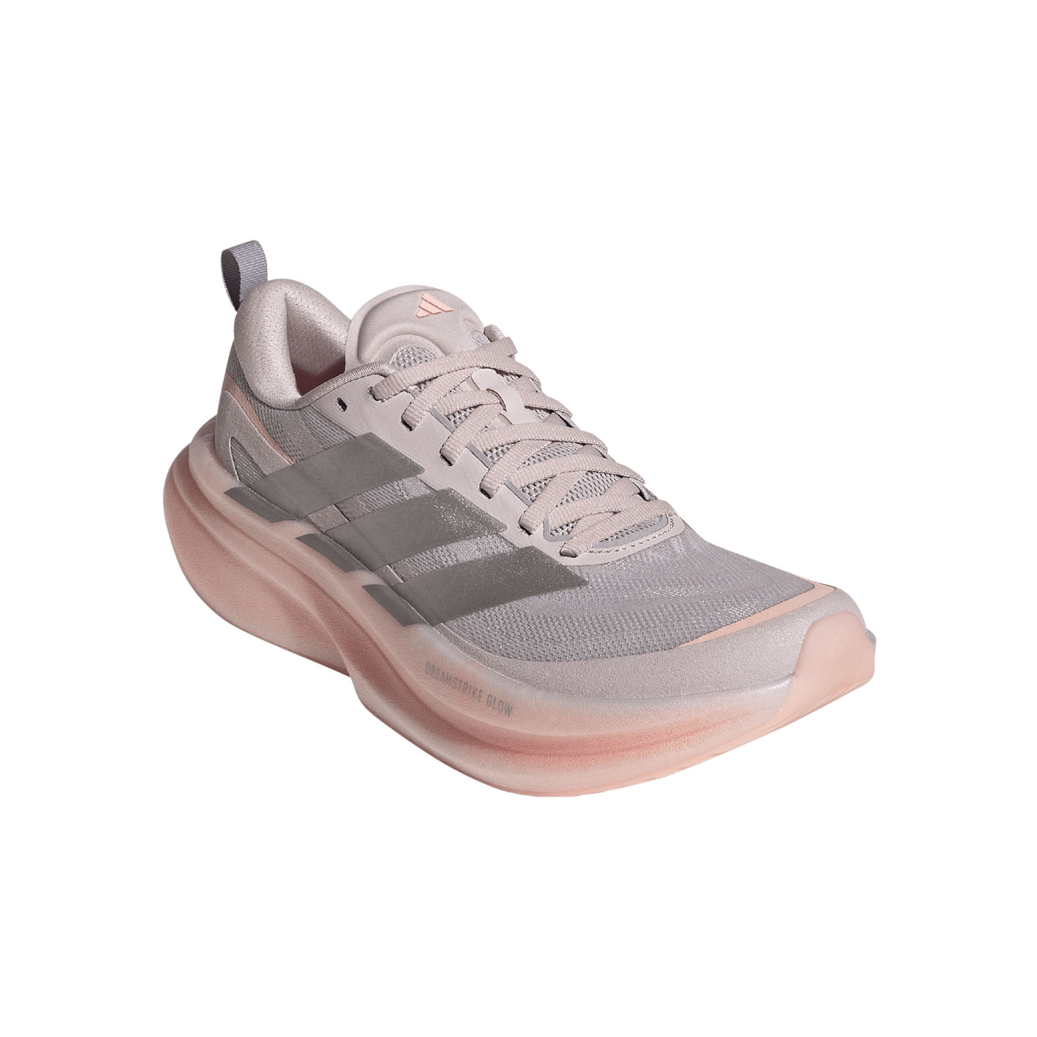 Tomaia in mono mesh elastico che avvolge il piede con leggerezza favorendo traspirazione costante. Intersuola in Dreamstrike Glow che combina due densità diverse per garantire sia cushioning che ritorno di energia. Aste flessibili e sagomate che assicurano stabilità e fluidità prolungata nelle transizioni. Suola Adiwear che, a contatto con il terreno, garantisce durata e aderenza perfetta in varie condizioni.