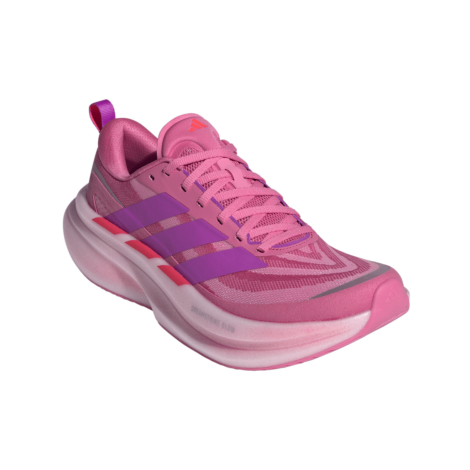Tomaia in mono mesh elastico che avvolge il piede con leggerezza favorendo traspirazione costante. Intersuola in Dreamstrike Glow che combina due densità diverse per garantire sia cushioning che ritorno di energia. Aste flessibili e sagomate che assicurano stabilità e fluidità prolungata nelle transizioni. Suola Adiwear che, a contatto con il terreno, garantisce durata e aderenza perfetta in varie condizioni.