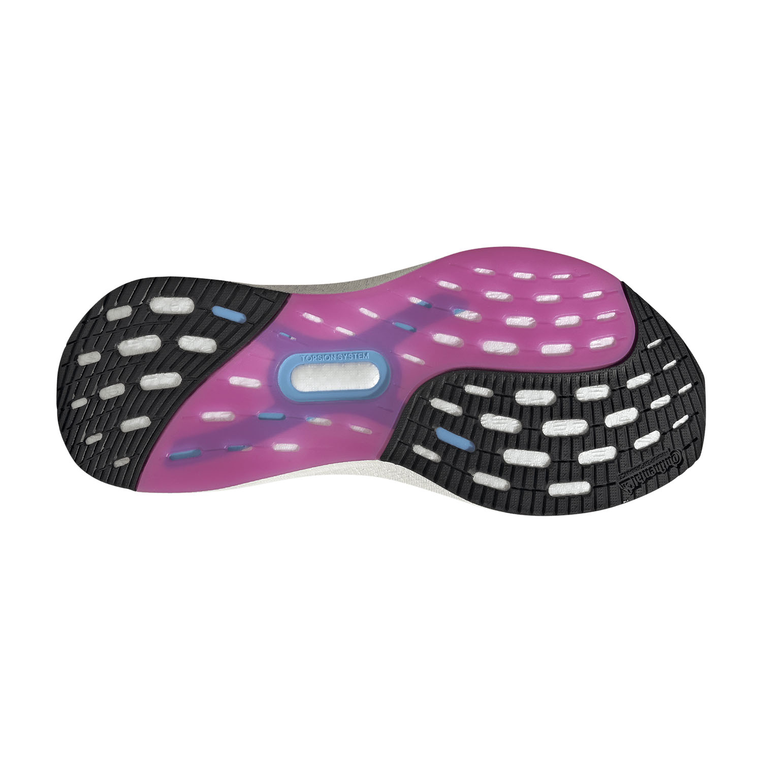 La gomma, leader del settore, garantisce un grip sul bagnato superiore a quello offerto sull'asciutto dalle altre mescole presenti sul mercato e assicura prestazioni ottimali in ogni condizione atmosferica e su ogni terreno. A seconda del modello di scarpa da running la gomma è posizionata su diverse aree della suola.