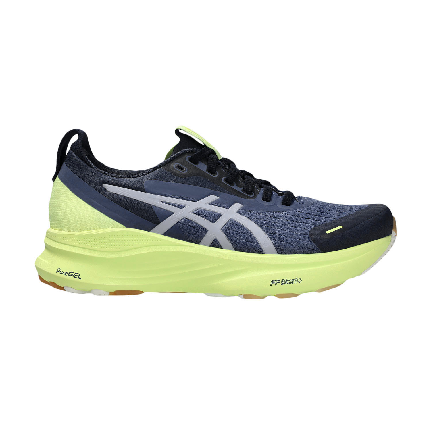 La tomaia in mesh morbido mantiene il piede al caldo garantendo al tempo stesso una buona traspirabilità. L'intersuola in mescola FF Blast+ ECO, resa più leggera e con un’altezza aumentata di 2 mm sull’avampiede, assicura un livello superiore di cushioning e comfort. L’inserto PureGEL posizionato sotto al tallone migliora l’assorbimento degli impatti e restituisce energia a ogni passo, mentre il sistema 4D Guidance contribuisce a mantenere un appoggio stabile e naturale anche in caso di pronazione o supinazione. La suola presenta un battistrada in mescola ASICS Hybrid Grip, una combinazione tra ASICSGRIP e AHAR+ che, posta in zone strategiche, offre un’aderenza ottimale e una lunga durata.