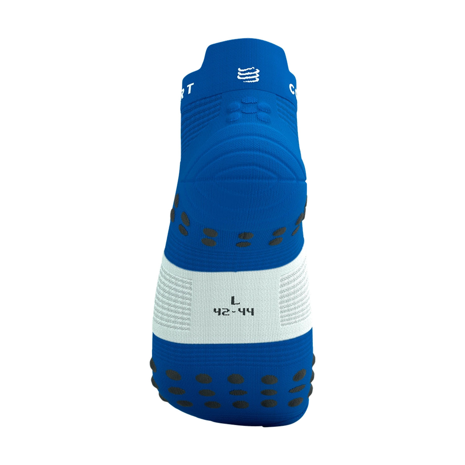 • Pianta del piede con motivo costituito da punti 3D (75%) e punti piatti (25%) che attutisce l'impatto migliorando la ventilazione, la presa nella scarpa ed esercita una leggera stimolazione che favorisce il ritorno venoso e ritarda la fatica