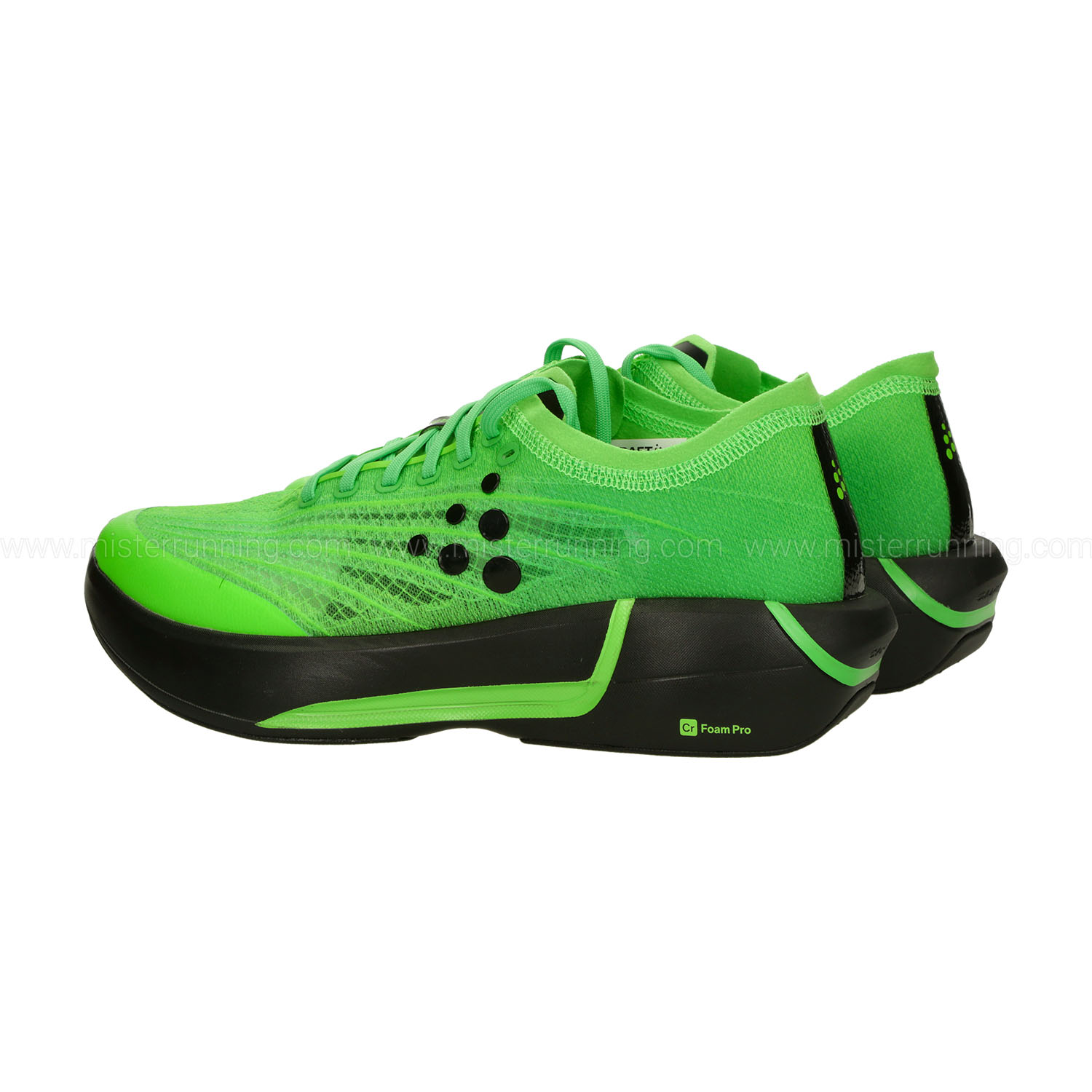 • Intersuola in Cr Foam Pro, una schiuma leggera, reattiva e performante, dal design rocker che facilita la rullata e la fluidità della corsa