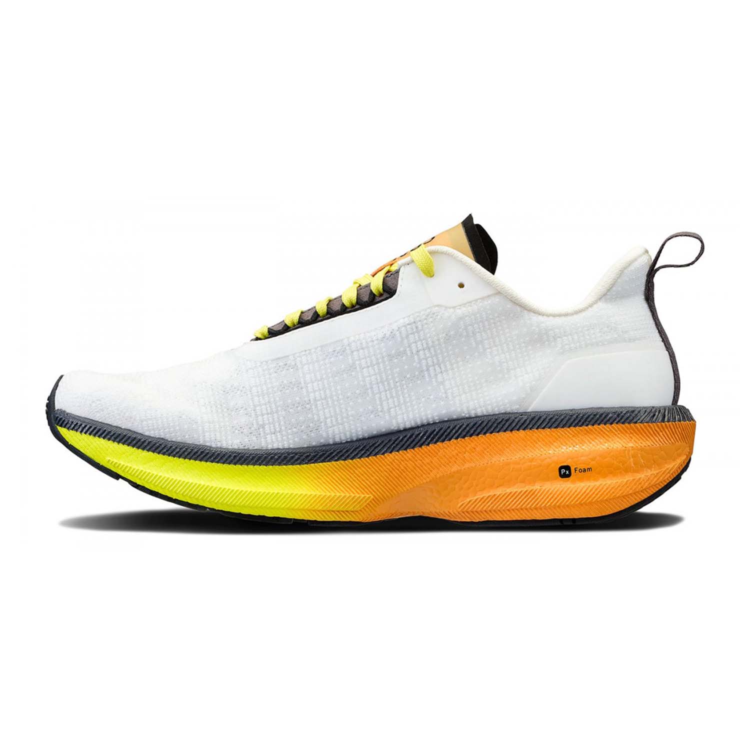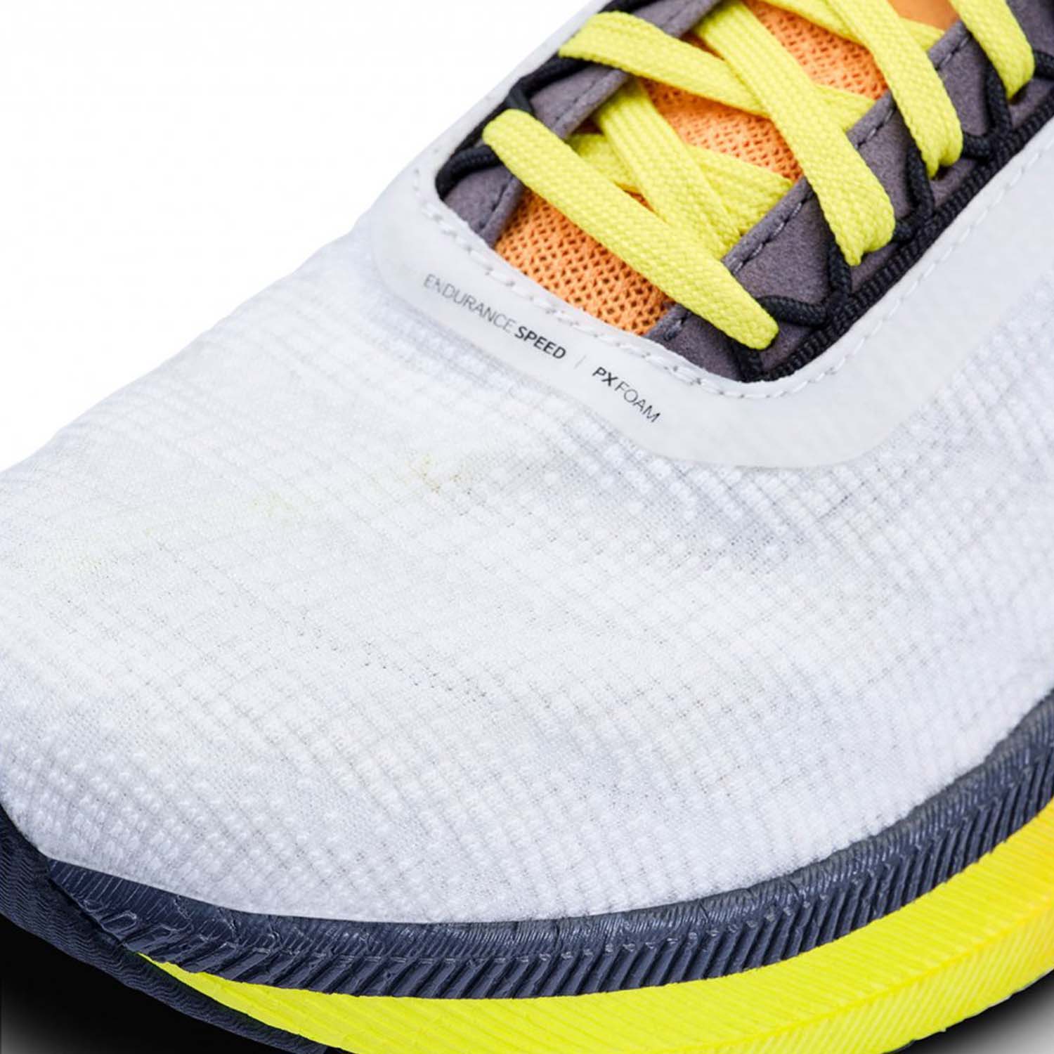 La tomaia è realizzata in mesh ingegnerizzato monopezzo che lavora in piena sintonia con il piede garantendo un feeling di comfort estremo e traspirazione costante. L'intersuola è strutturata in mescola Px Foam ottimizzata per assicurarti spinta esplosiva e ammortizzazione oltre che una falcata fluida ed efficiente. La suola, in gomma super resistente, permette di non perdere mai il grip con l'asfalto.