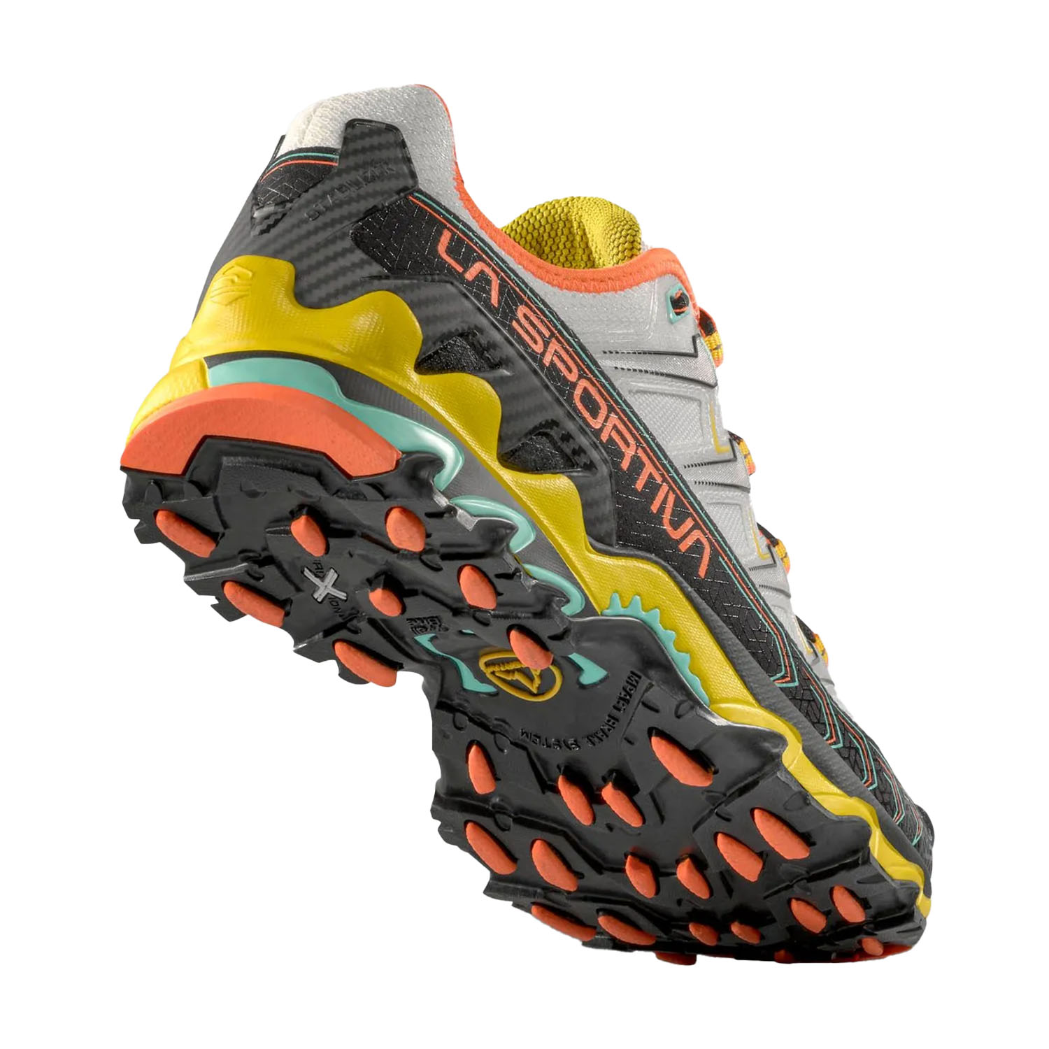 Innovativo sistema applicato alla suola che assorbe l’impatto, aiuta in trazione e trattiene in frenata. La particolare disposizione dei tasselli fa in modo che alcuni di essi vengano a contatto per primi con il terreno addolcendo l’appoggio del battistrada.