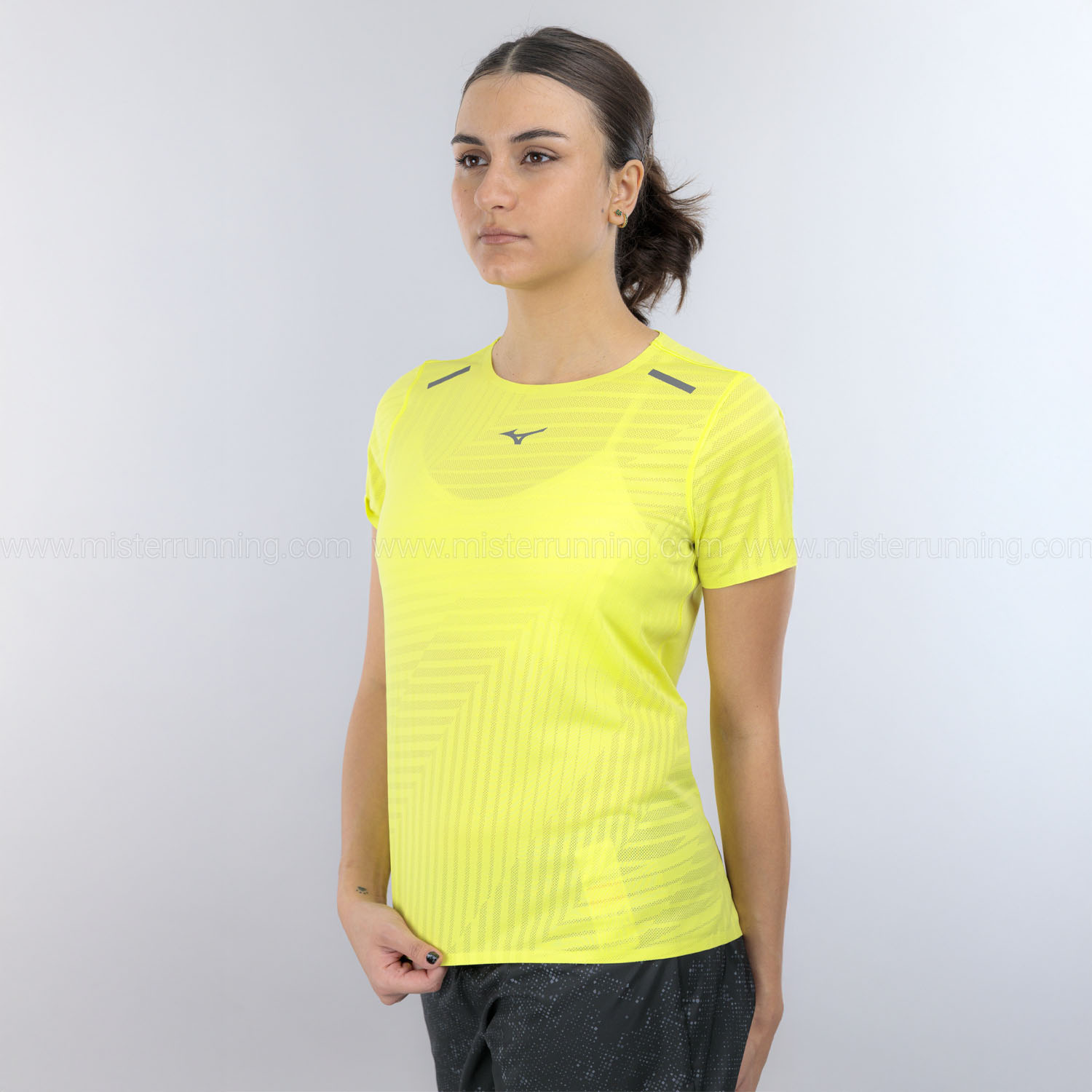 Realizzata interamente in mesh jacquard, la maglietta da running per donna Mizuno Tech Light Pro assicura un’eccellente traspirabilità, favorendo la rapida dispersione del sudore e garantendo una sensazione di freschezza per tutta la durata delle tue corse.