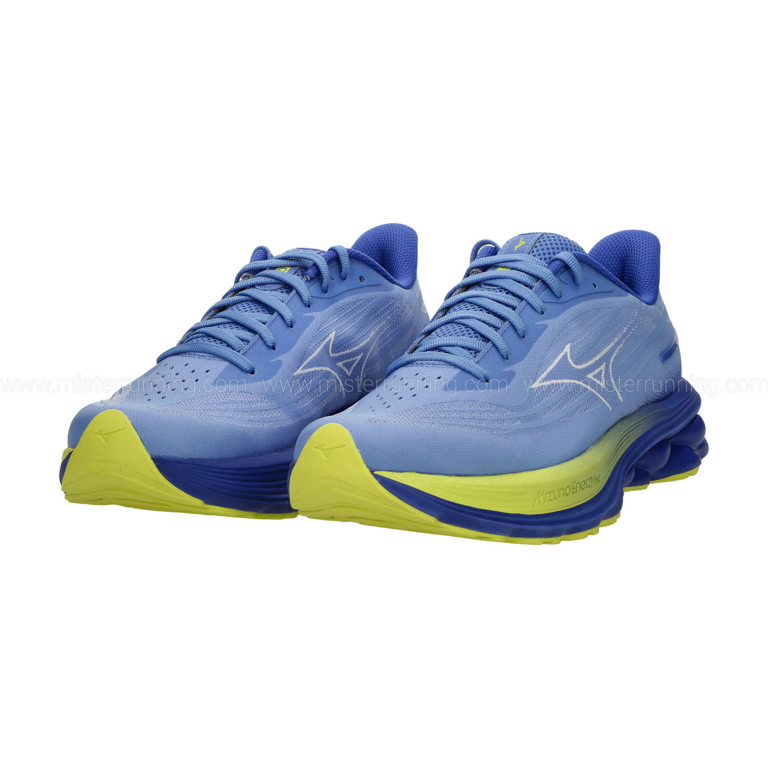 La tomaia è realizzata in mesh morbido che avvolge delicatamente il piede e assicura una ventilazione costante. L'intersuola, con design Wave e in doppio strato Mizuno Enerzy e Mizuno Enerzy NXT, è progettata per offrire un maggiore ritorno di energia senza rinunciare al cushioning. La suola, in gomma antiabrasione e intagli di flessione, è più ampia nella zona tallonare e mediale per assicurare atterraggi stabili e trazione costante.
