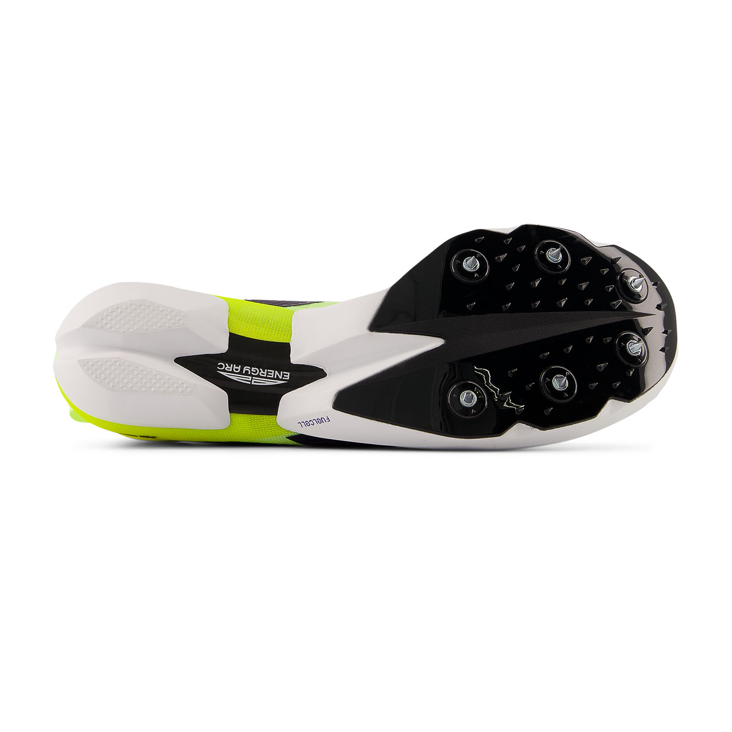 La tomaia è in mesh ingegnerizzato, leggero e super sottile, che consente di avvolgere il piede mantenerlo ben saldo. L'intersuola è realizzata in mescola FuelCell e piastra in fibra di carbonio Energy Arc con una rigidità superiore in avampiede e un design curvo che restituisce il massimo dell'energia durante la corsa. Il piatto suola dentellato è predisposto per il montaggio di 6 chiodini, inclusi nella confezione insieme alla chiavetta.