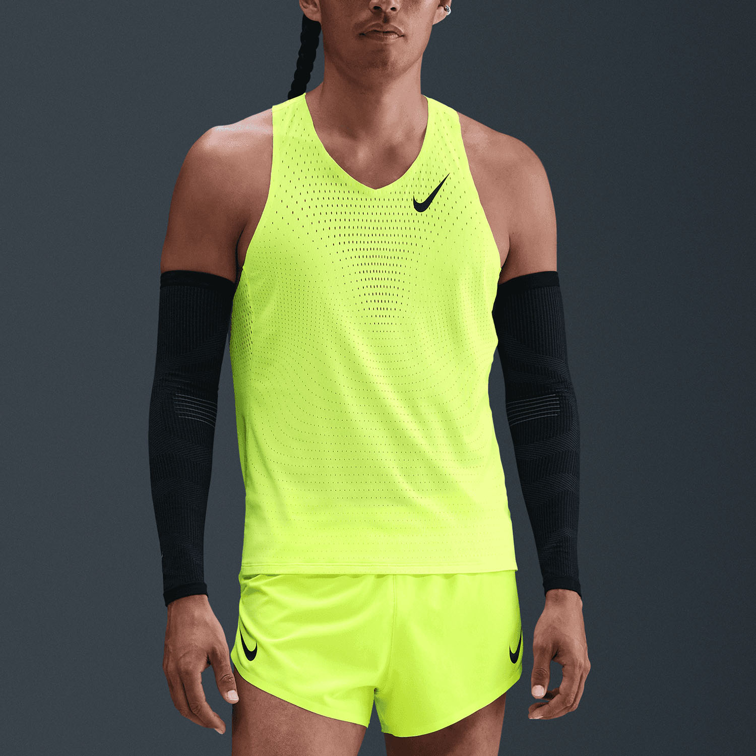 Pensata per le gare, la canotta da running per uomo Nike Dri-FIT ADV AeroSwift è leggera, realizzata con tessuto interamente in mesh che allontana l'umidità e ti aiuta a muoverti liberamente mentre dai il massimo.