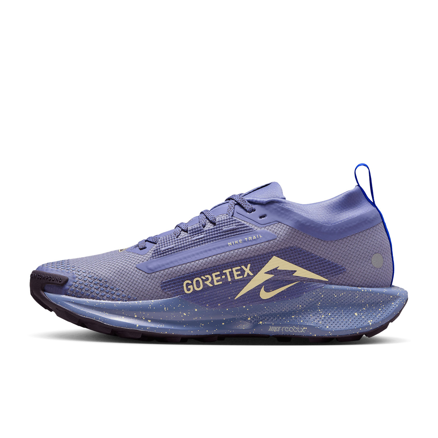 Le Nike ReactX Pegasus Trail 5 GTX sono le scarpe da trail running per donna perfette per essere utilizzate sia su sterrati tecnici che su brevi tratti su asfalto.