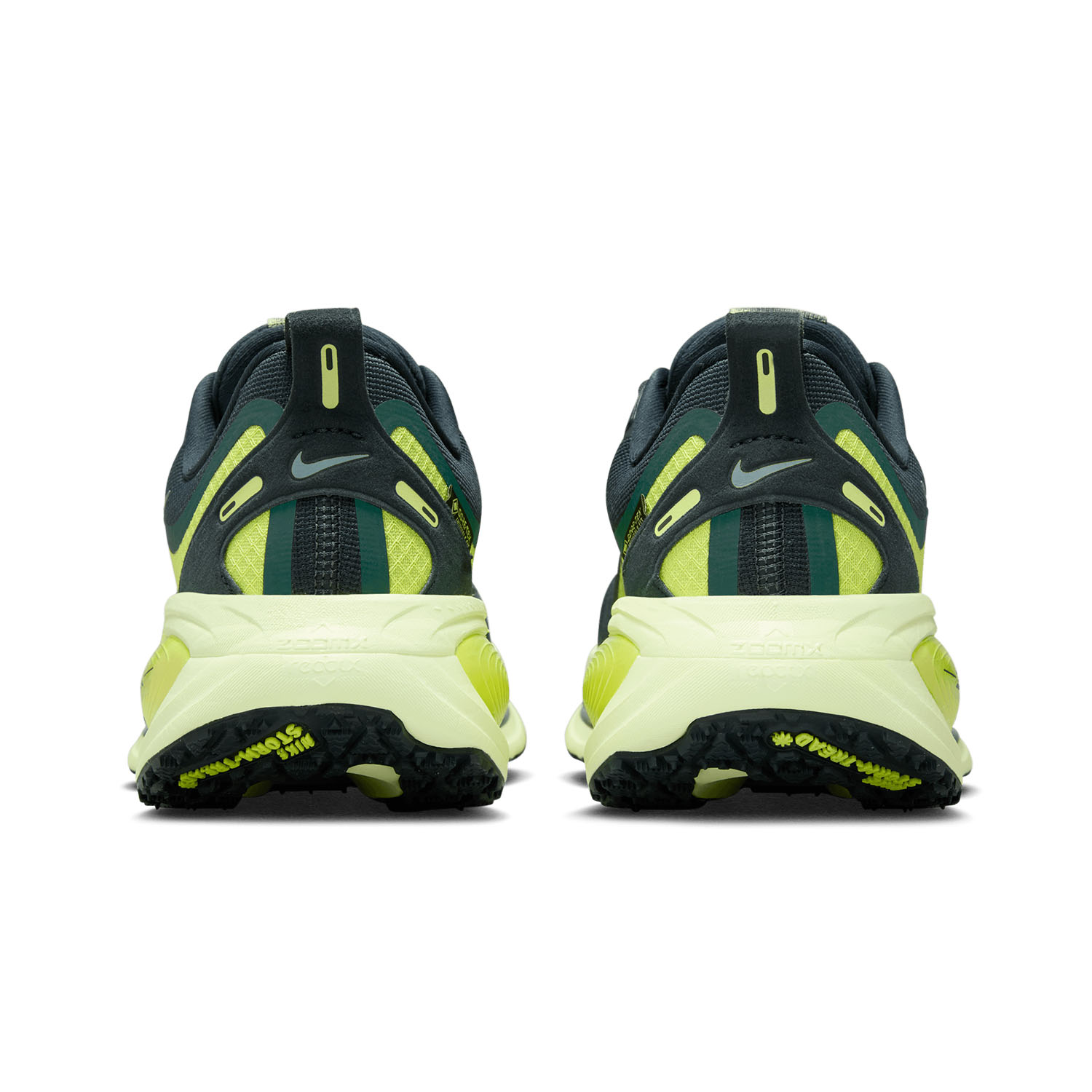 La tomaia in mesh tecnico ingegnerizzato e con punti più morbidi al tatto che assicurano un comfort ottimale, è rivestita dalla membrana impermeabile Gore-TEX Invisible Fit che protegge dalla pioggia. L'intersuola, più alta rispetto al modello precedente, è stata completamente aggiornata a partire dal design rocker per finire con la combinazione di due tipi diversi di schiuma: ZoomX in alto e ReactX in basso. Questo mix è studiato appositamente per offrire il massimo del cushioning oltre che un'ottima reattività. Il battistrada è aggiornato con un avampiede dai tasselli più ampi denominati Podular Traction. Questa nuova geometria consente di non perdere mai l'aderenza con il terreno nella fase di stacco e di godere di una fluidità eccezionale per tutta la falcata.