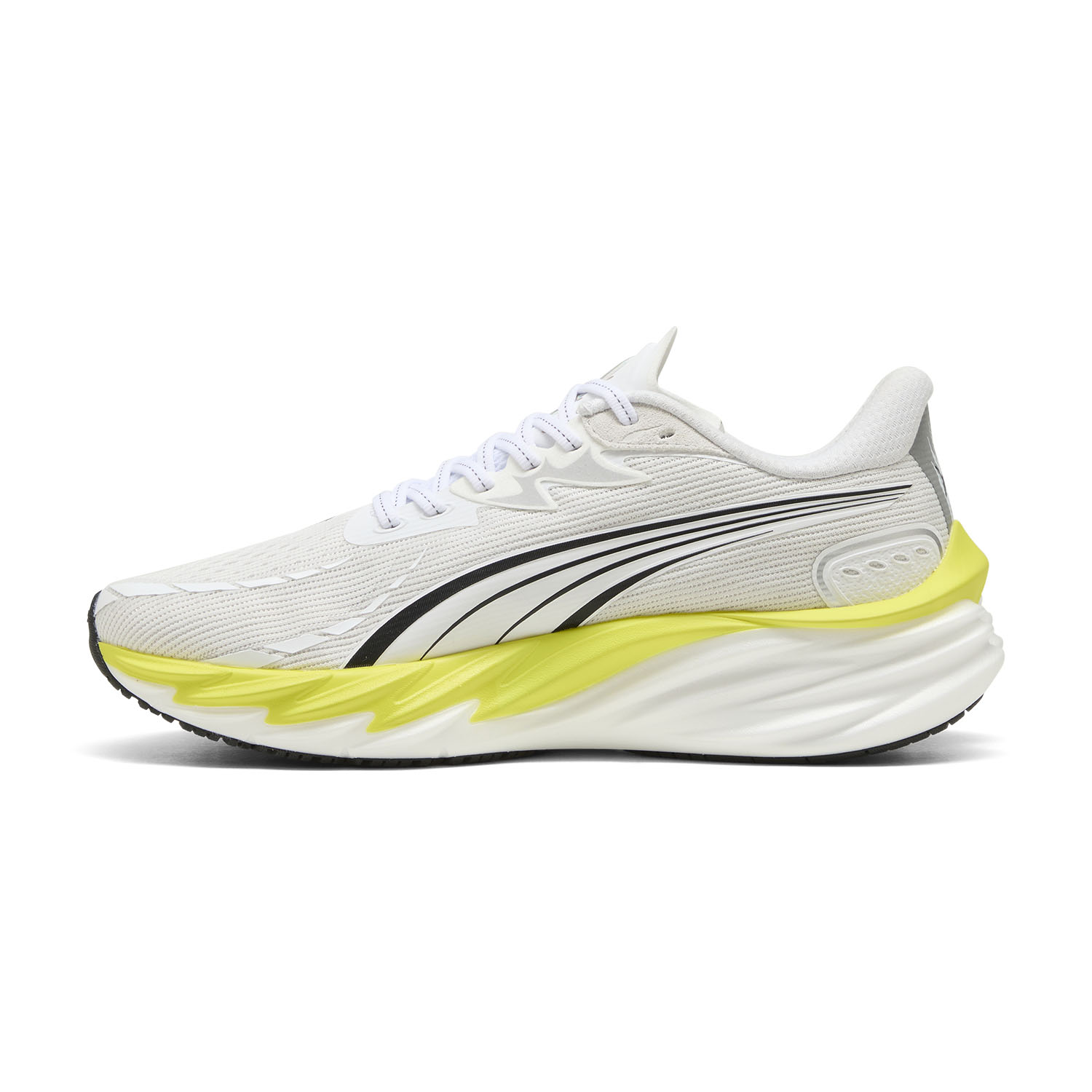 La tomaia in engineered mesh altamente traspirante è progettata per seguire la forma del piede, garantendo un fit avvolgente e confortevole. L'intersuola, realizzata interamente in mescola NITROFOAM, assicura un equilibrio ideale tra ammortizzazione e ritorno di energia, favorendo una falcata più fluida e dinamica. La suola presenta un battistrada PUMAGRIP che offre un’eccellente aderenza al terreno e una trazione ottimale.