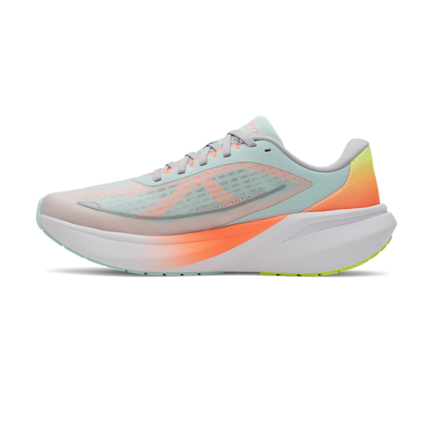 La tomaia in mono-mesh, estremamente leggera e traspirante, assicura una gestione ottimale dell'umidità e un fit preciso che avvolge il piede senza appesantirlo. L'intersuola in mescola HOVR garantisce un assorbimento degli impatti efficace, restituendo energia ad ogni passo per una risposta sempre fluida e reattiva. La suola presenta un battistrada in gomma ad alta resistenza, studiato per offrire una trazione superiore e una stabilità sicura su ogni superficie stradale.